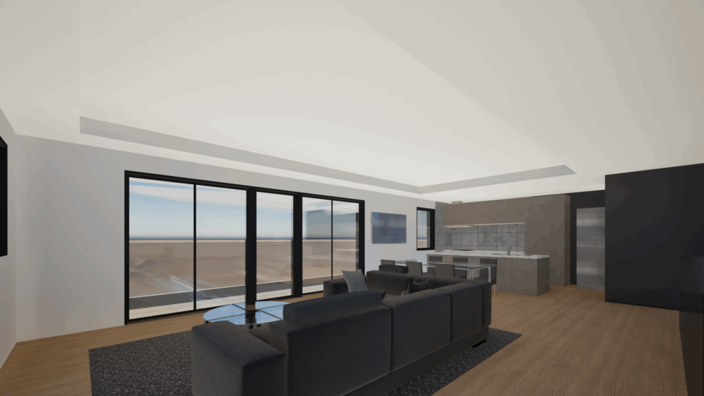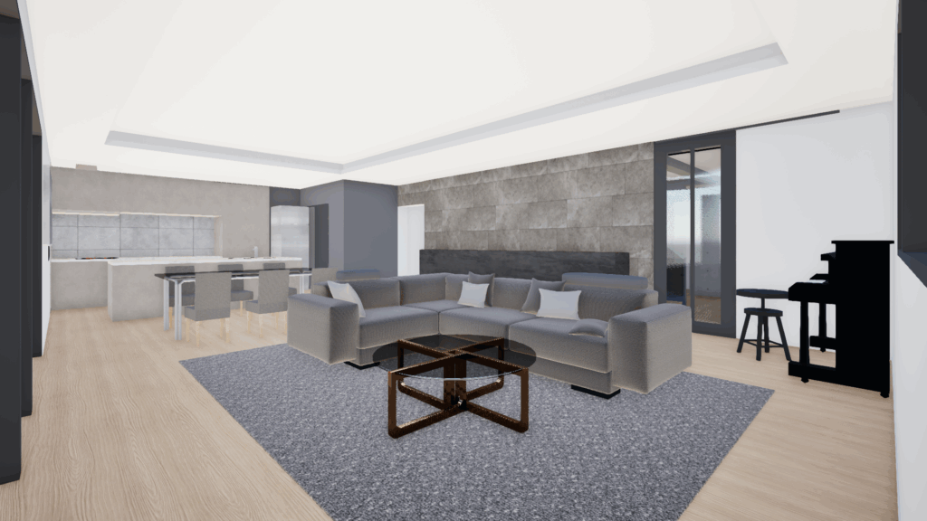 このような柔軟な対応は、型式認定を前提とするハウスメーカーでは難しい設計です。現場打ち鉄筋コンクリート造ならではの「高さ」や「形状」の自由度が、本計画のような傾斜地・変形敷地において、最大限の設計メリットを発揮しています。