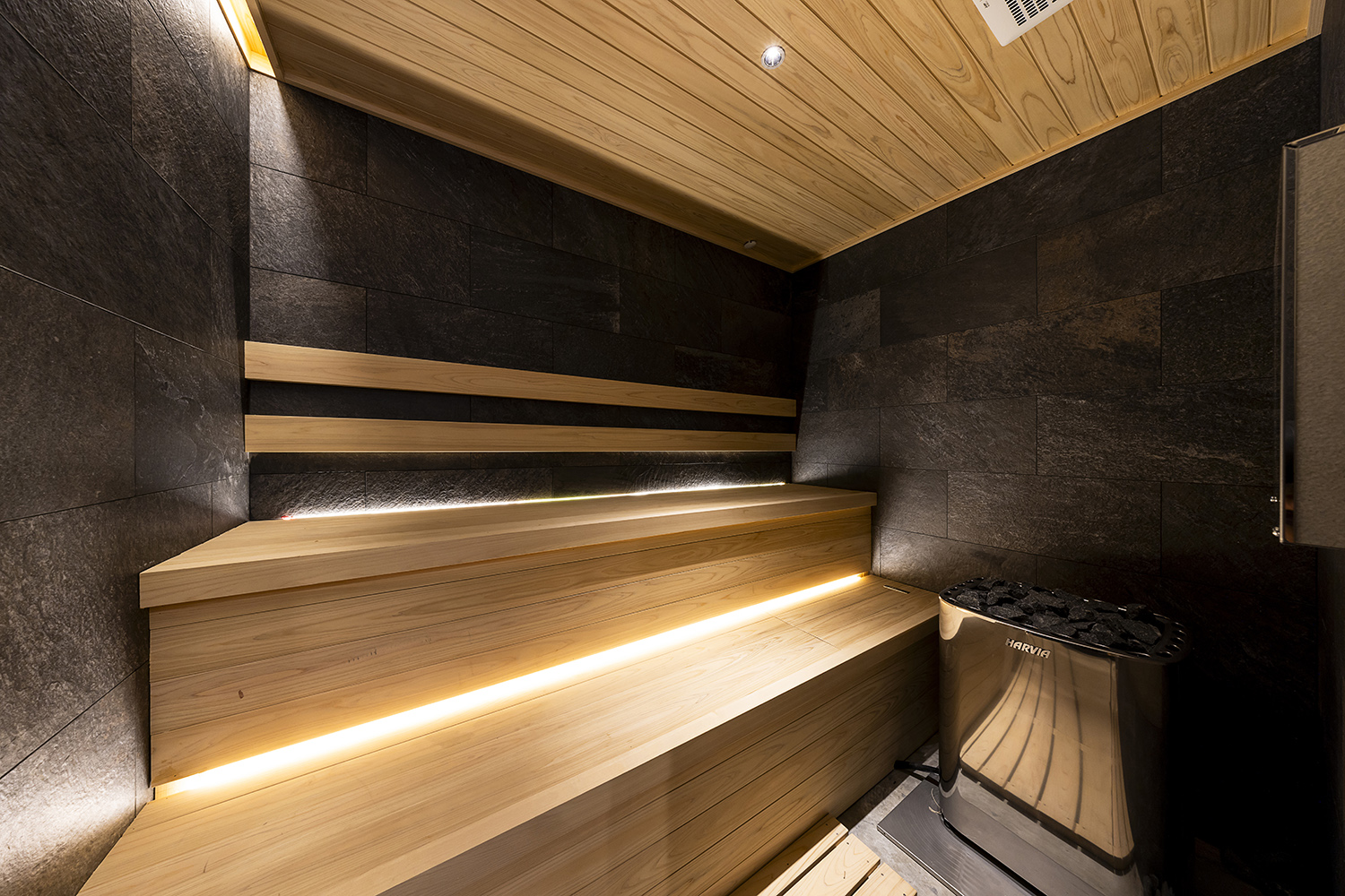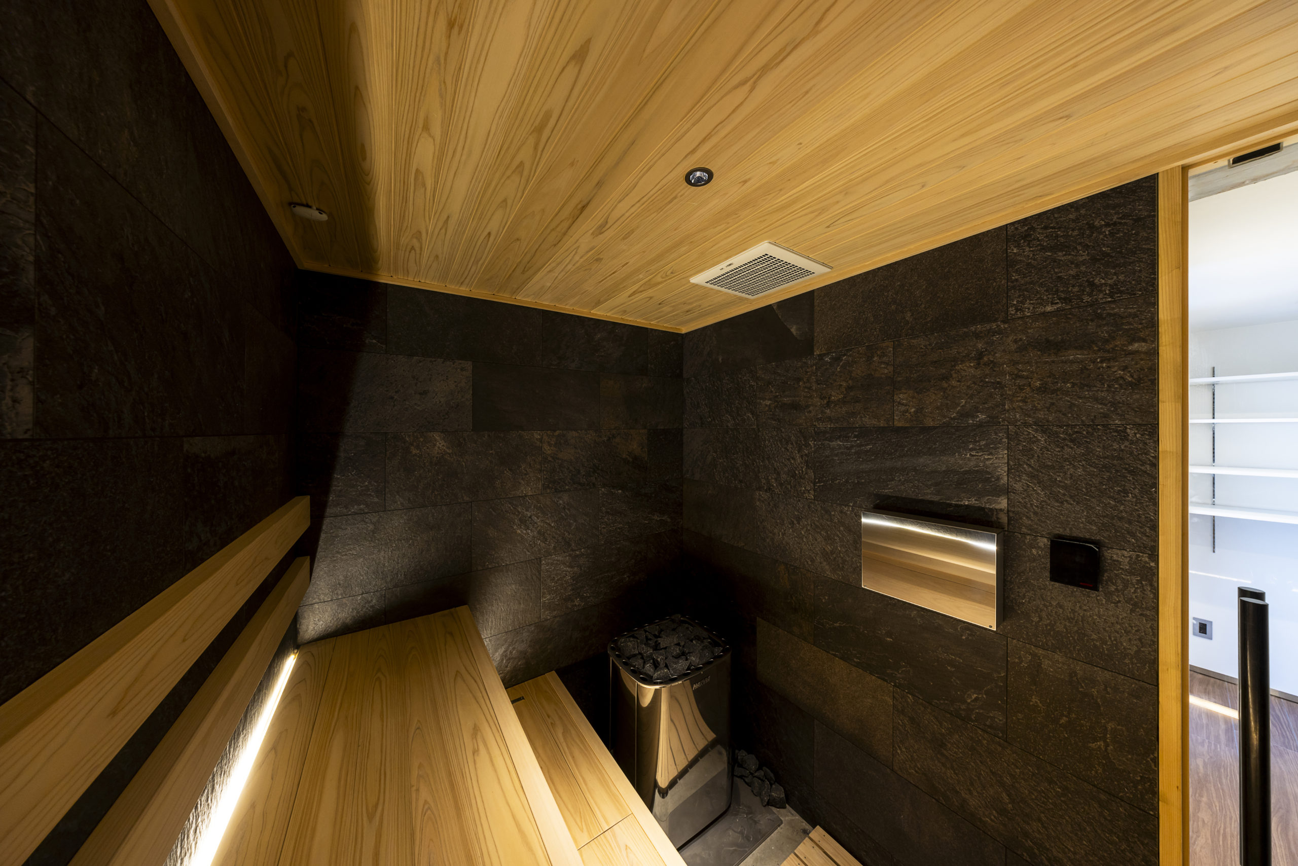 当初はサウナを設置するかどうか迷われていましたが、最終的には規格品ではなく「在来工法によるサウナ」を採用することになりました。在来サウナはデザインの自由度やグレードが圧倒的に高く、規格サウナとは比較になりません。さらに、本格的にロウリュウができるサウナを実現するためには、必然的に在来サウナでの計画が不可欠となります。