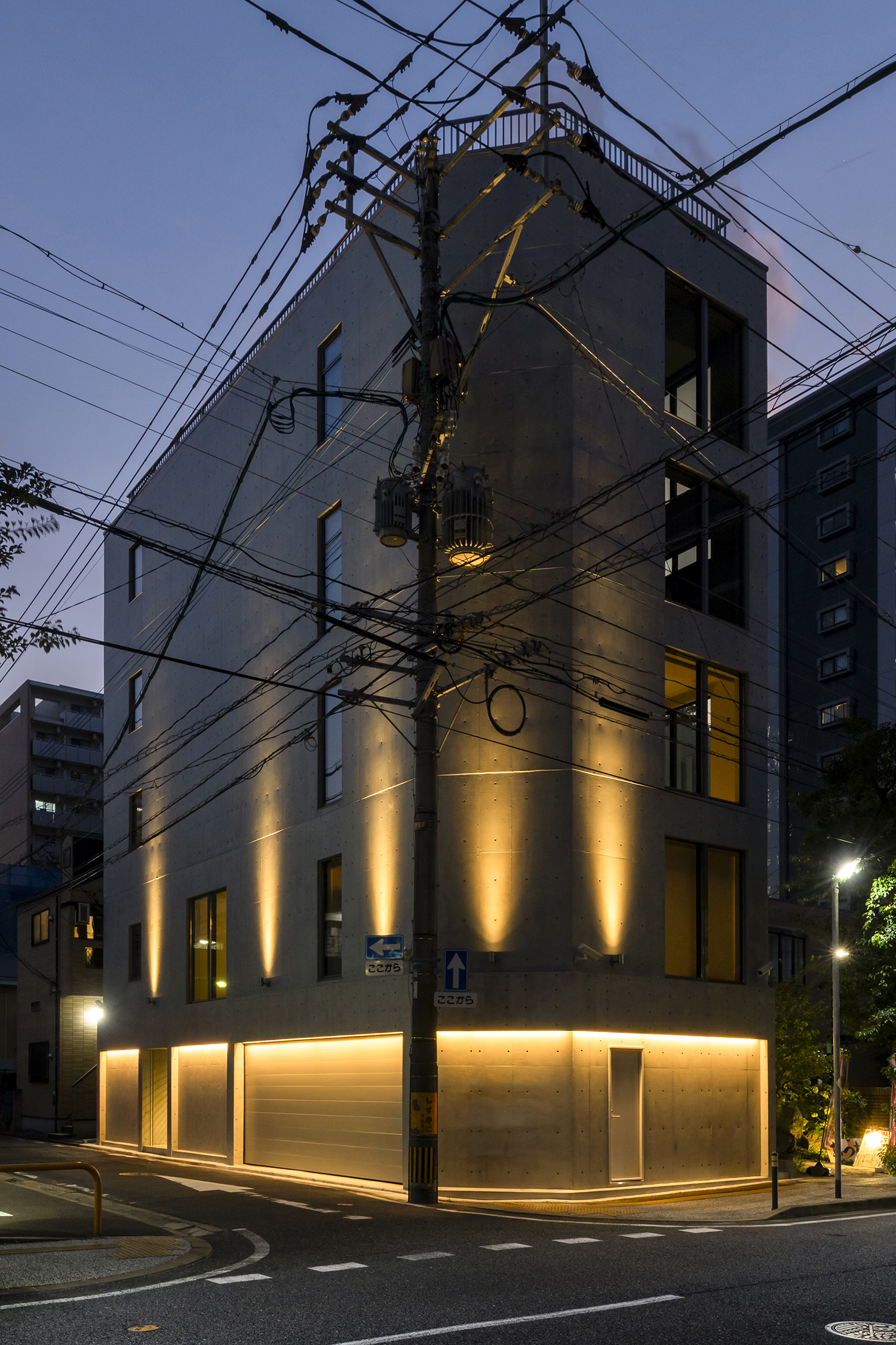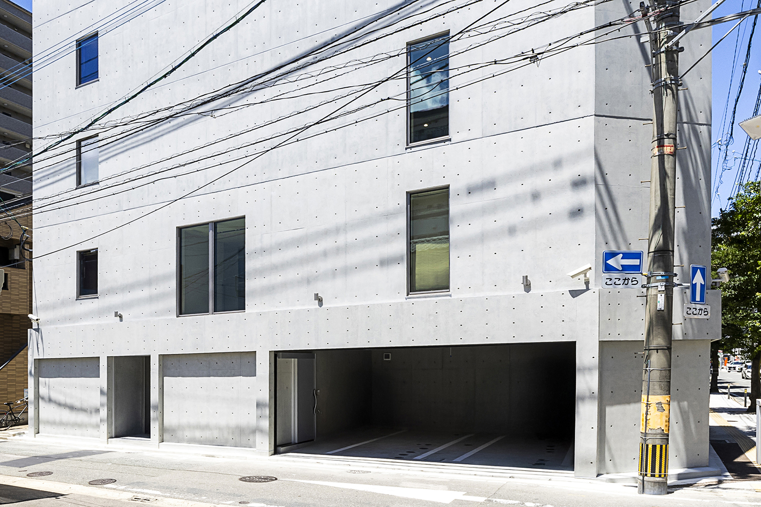 この建物は一階部分と2階から5階までを切り分けたデザインとしている。一階部分だけをゲートで囲む事でアクセントとする事で、単純な5階建てだとシンプルになりすぎる所を象徴的なデザインへと昇華させた。さらに、切り分けた形態をより強調する形で夜間の照明計画を行い、夜には圧倒的な存在感を示している。