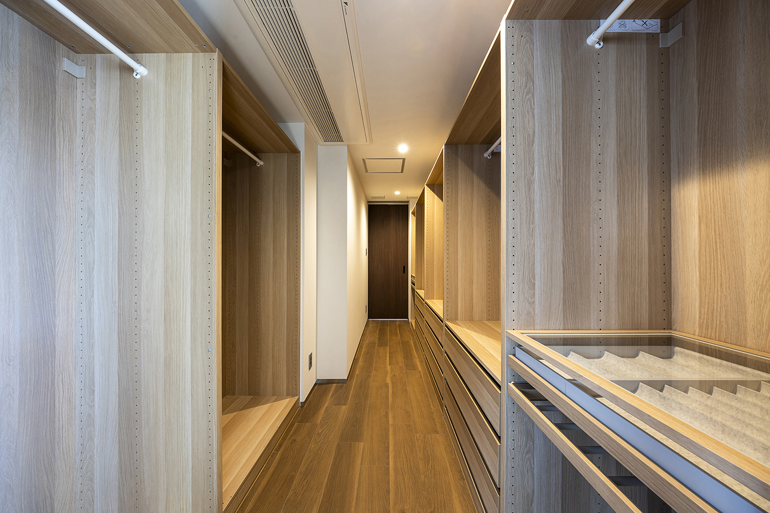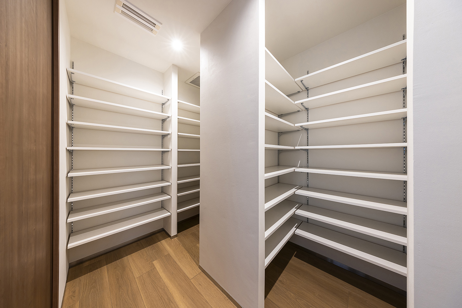 玄関を入ってすぐの個室はシューズクローゼットとして設計し、豊富な収納力で多くの靴を収められるようになっています。