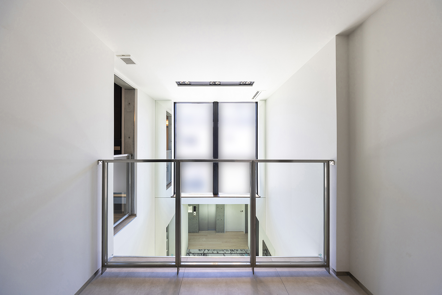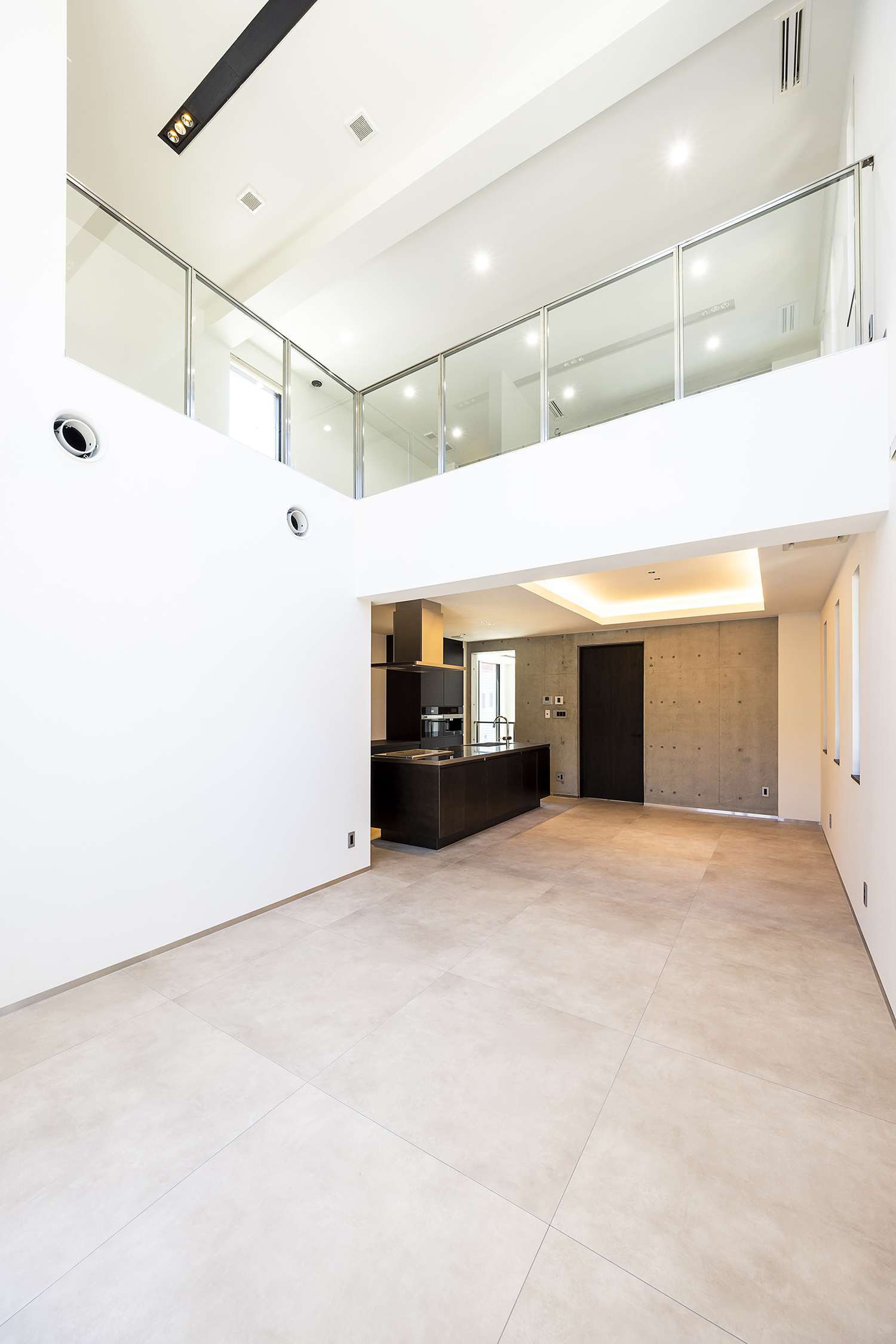 また、階段を上がった二階ホールからは吹き抜け越しに一階ホールを望むことができ、連続性のある空間構成によって設計に一層の面白みを加えています。