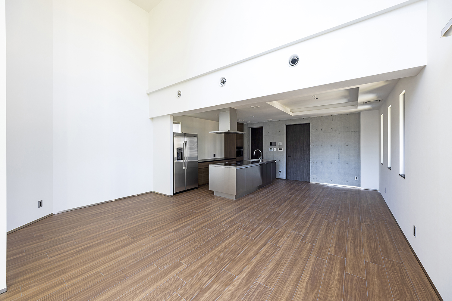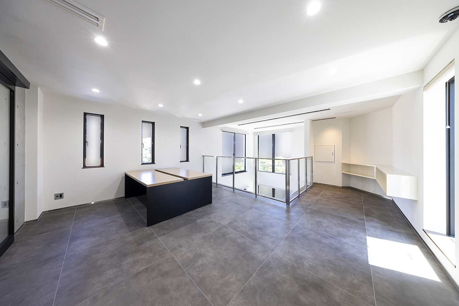 LDKに隣接する多目的スペースは、会社の事務作業を行ったり、友人と団欒したりするスペースになります。