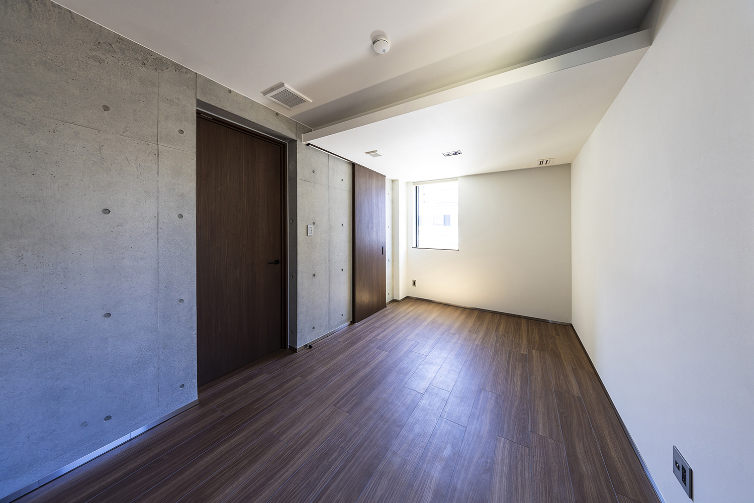 洋室にはそれぞれ間接照明を設置し、さらに天井高さを変えることで空間に変化と面白みを持たせています。撮影時には照明が点灯していないのが残念ですが、実際には光によって遊び心が演出され、夜にはリラックスできる心地よい空間となります。