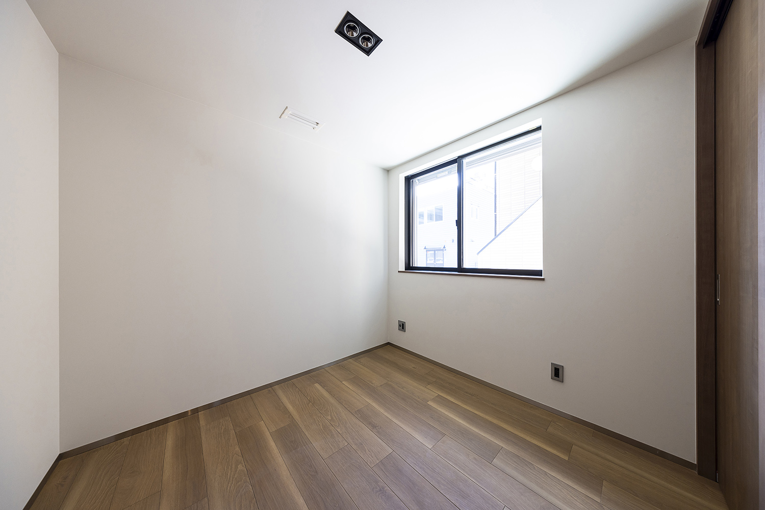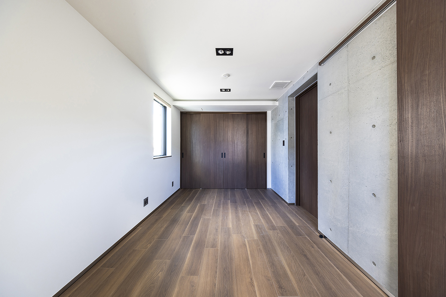2階は1階とはテイストを変え、木調の床仕上げとしました。今回はほとんどの部屋に塩ビタイルを採用し、メンテナンス性に優れた仕様としています。